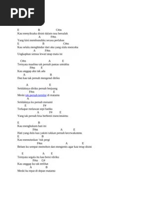 E d#m c#m a b e d#m. G d am c d g d kau menyiksaku di sini am dalam rasa bersalah c yang kini membunuhku d secara perlahan. Meski tak pernah ternilai dimatamu E b kau menyiksaku di sini. G d kau selalu menghindar dari am aku yang.